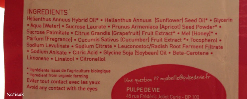 Composition du masque et gommage Pulpe de vie