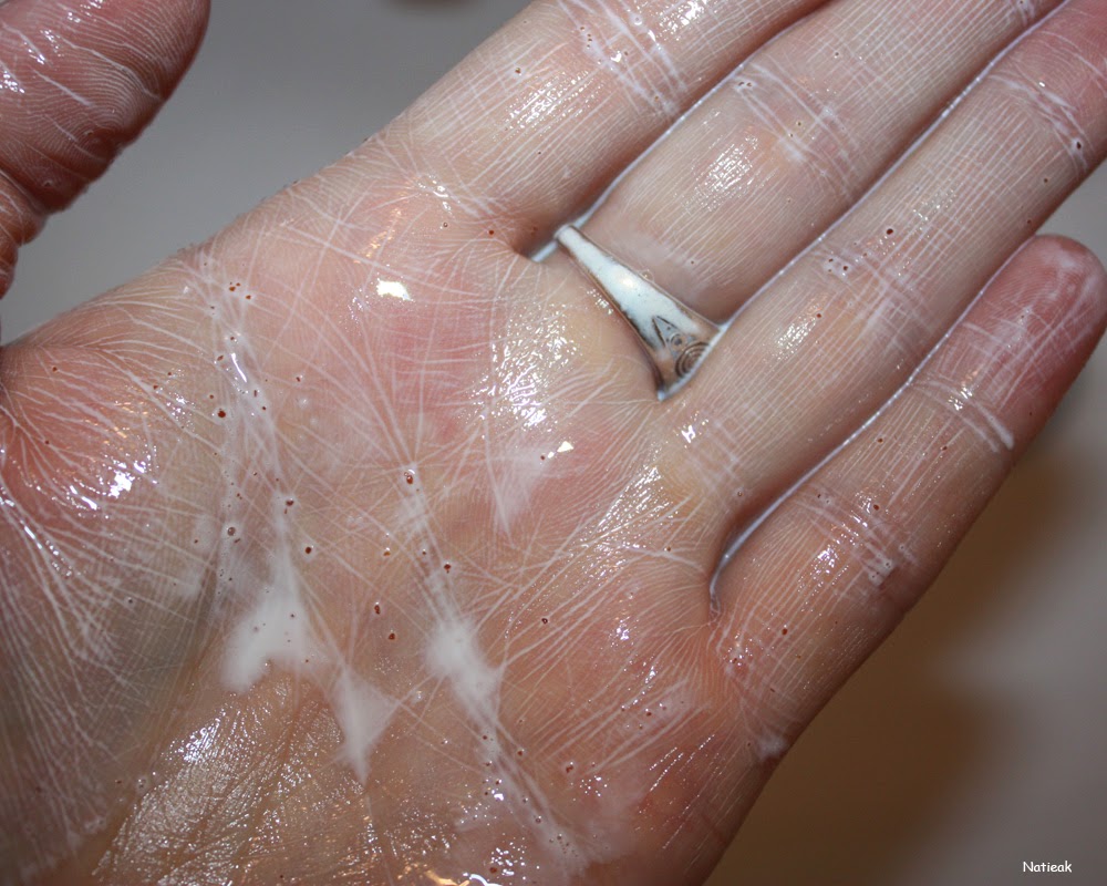 Une fois le massage fini, j’ai ajouté de l’eau. Le produit se transforme en lait pour facilité le rinçage et permet de réhydrater la peau en fin de soin.
