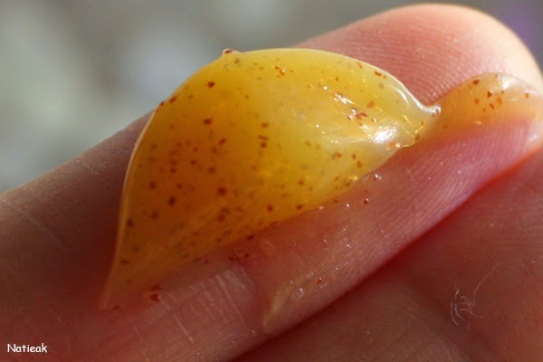 Le sachet a un volume de 5 ml. Le visage doit impérativement être sec durant l’application.  La consistance est plutôt  collante ce qui est probablement dû à la présence du miel.
