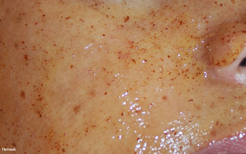 On remarque aussi les petits grains d noyaux d’abricot. Une fois posée, on oublierait presque notre masque. Seule l’odeur citronnée, fort agréable, nous rappelle que l’on a un soin en cours. Au bout de 5 minutes, il faut masser doucement afin de purifier – grâce aux noyaux d’abricot – notre visage. J’ai trouvé cette étape très agréable.