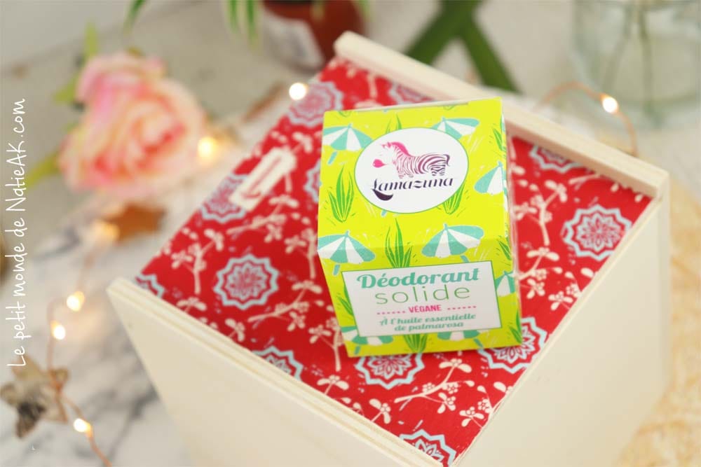 Si je suis passée au déodorant bio, les miens se présentent souvent sous le forme de stick comme le déodorant douceur coton poudré d’Acorelle. L’intérêt du déodorant à l’huile essentielle de palmarosa de Lamazuna est qu’il se présente sous la forme solide avec un emballage en carton est biodégradable : zéro déchet.