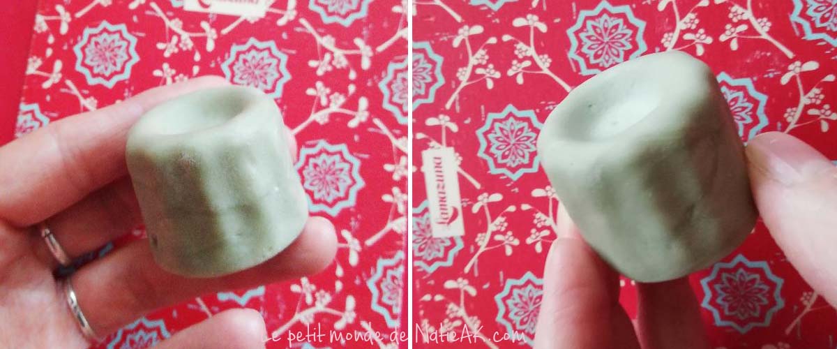 La forme du shampoing est pas ouf non plus (j'était pourtant déjà adepte des shampoing solide)