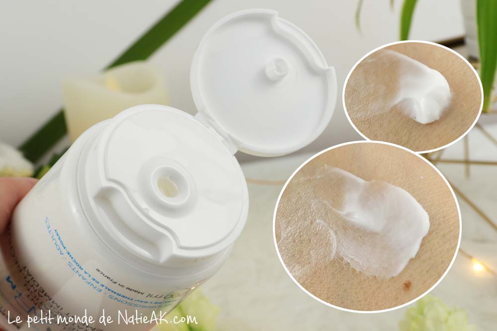 Ce soin comporte les mêmes spécificités que l’huile lavante, puisqu’il rééquilibre le microbiome et restaure la barrière cutanée. On retrouve donc l’aqua Posae Filiformis, le beurre de karité et la Niacinamide et l’eau thermale.