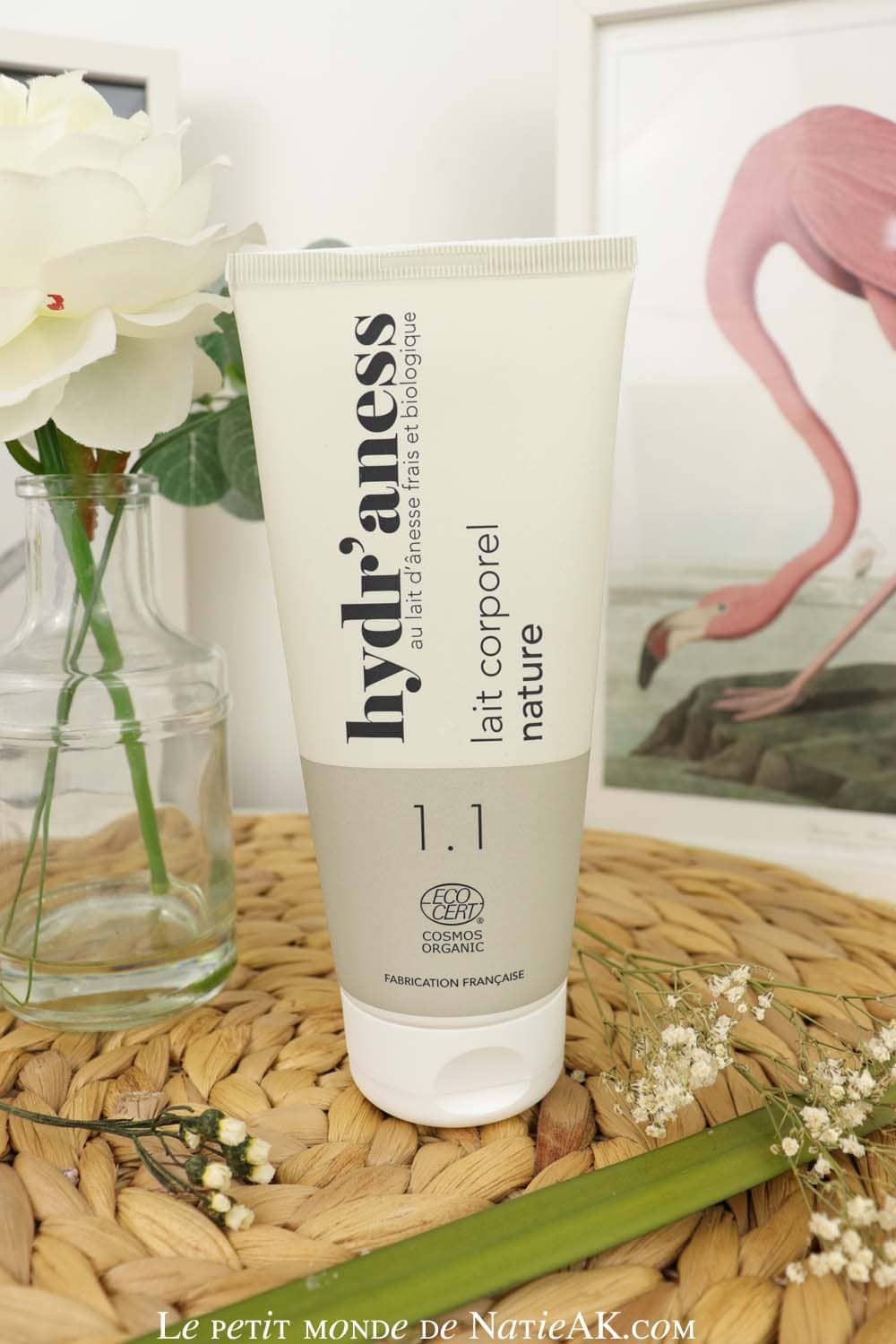 Pour le corps, le lait corps nature permet d’optimiser les effets du gel douche en accompagnant les bienfaits apaisants et hydratants du soin. Le lait d’anesse est là aussi associé à l’aloe vera, l’huile d’amande douce et de tournesol autour de la fleur de coton pour offrir une senorialité tout en douceur, à l’image de ce lait qui apaise et répare la peau. Il répond bien aux attentes d’Aimie avec des ingrédients capables de limiter le dessèchement cutané sur sa peau atopique à tendance sèche.