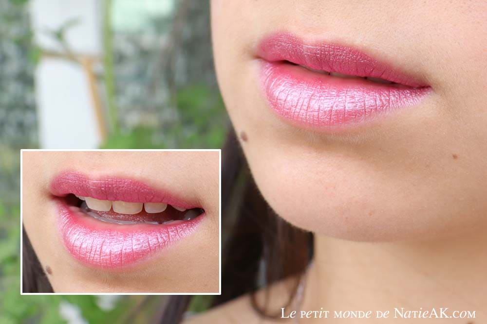 Et voici le rendu sur les lèvres d’Aimie : une belle teinte rosée métallisée qui donne envie à ma fille d’en acheter d’autres. Quand on sait qu’il se décline en 35 couleurs dont 18 dans des tons Rose et 8 dans des tons Rouge, le choix me manque pas !