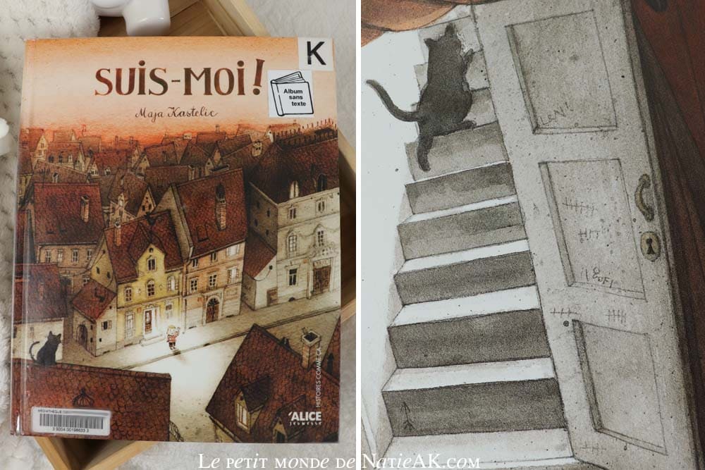 Pour« Suis-moi ! » est un livre sans dialogue, destiné aux enfants à partir de 5 ans, écrit par Maja Kastelic et publié en 2017 pour son édition française. Un petit enfant blond, de 7 ans à peine, se balade seul une fois la nuit tombée. Intrigué par un chat, qu’il voit à travers l’embrasure de la porte d’entrée d’un immeuble qui lui est inconnu, il décide de le suivre. Selon le site de la maison d’édition française, Alice Jeunesse, « Le chat devient notre guide pour cette aventure, et les souris nos complices. Un livre sans texte, mais qui fourmille de détails que les enfants découvriront avec émerveillement, dont une histoire en parallèle avec deux petites souris. ».