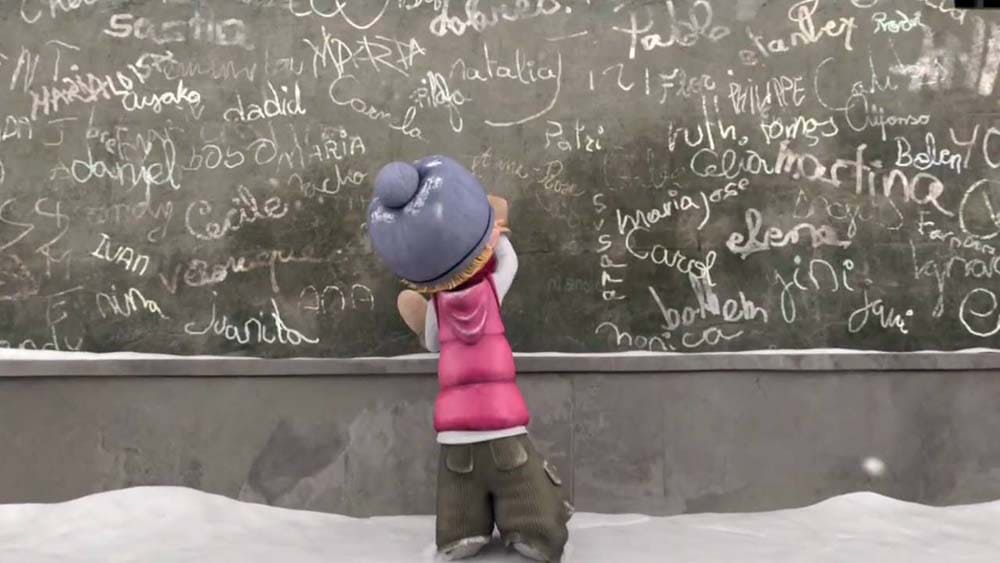 Réalisé par Rodrigo Blaas en 2009, Alma est un court métrage homonyme de 5 minutes seulement, suivant une petite fille blonde qui se balade seule dans des rues étroites d’une ville prise d’assaut par une neige, ancrée sur ses toits, sur son sol, sur son manteau. Elle découvre un tableau noir où des dizaines et des dizaines de prénoms d’enfants ont été écrits à la main, tracés avec application par les enfants eux-mêmes, à la craie blanche. Certaines écritures, plus hésitantes que d’autres, ont l’air d’avoir été faites par des enfants de 5 ans, là où les plus âgés devaient avoir 10-11ans.