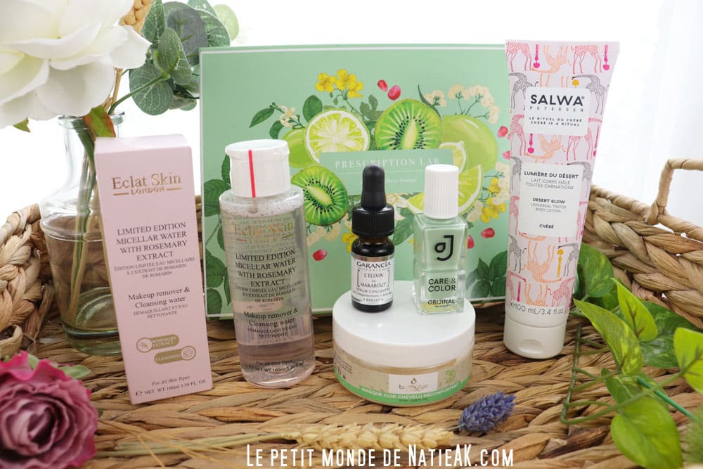 Si vous me suivez sur Le petit monde de NatieAK, vous avez pu lire plusieurs retours sur cette box mensuelle. En partenariat avec de nombreuses marques en phase avec la charte de Prescription lab, les soins sont sans PEG, perturbateurs endocriniens ni nanoparticules. Notons également la démarche éco-responsables lors de l’envoi via des emballages réutilisables.