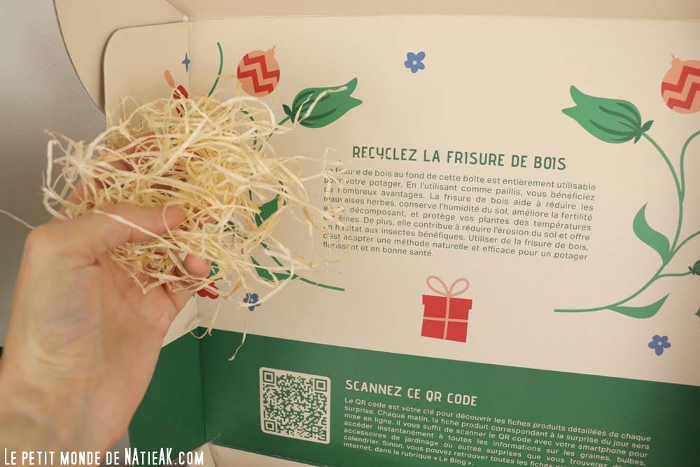 C’est ainsi qu’on découvrira jour après jour les différents produits : un QR code nous donnera des conseils et des astuces pour mener à bien notre activité de jardinage. J’ai très hâte d’ouvrir les sachets ! Si vous souhaitez prolonger le plaisir du jardinage, le site en plus de kit de jardinage, une box mensuelle, afin de cultiver des légumes bio.