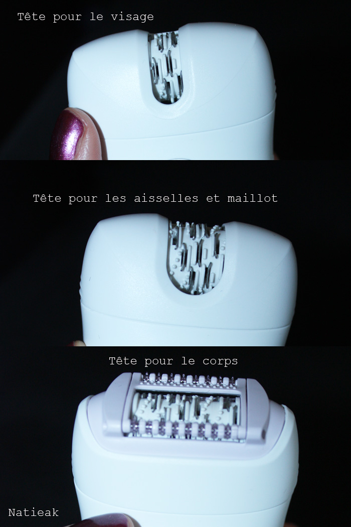 Deux accessoires se placent sur la tête d’épilation selon la zone qu’on veut épiler (aisselle, maillot et visage).
