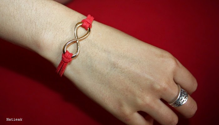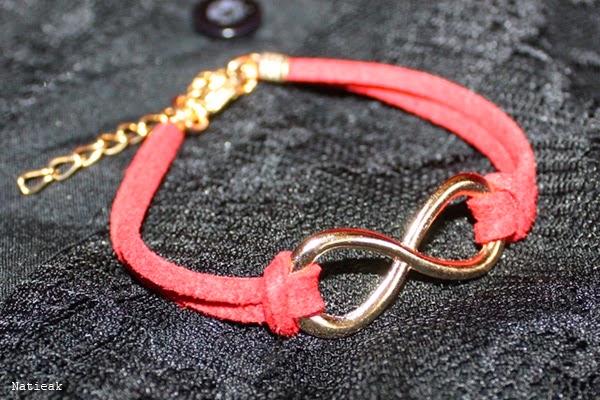 Cette box mode contenait également un bracelet rouge avec le signe Infini symbole de l’amitié sans fin ou de l’amour. Il se trouve que c’est l’une de mes couleurs préférées : il ne quitte plus son poignet.