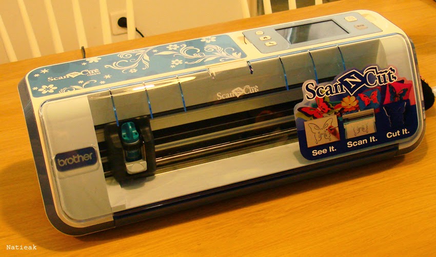 Quelle merveille de technologie. Le Scan and cut permet de découper différents supports papier, carton, tissu cuir, etc, selon un motif défini … On peut aussi réaliser nos propres créations puis les scanner grâce à la machine et hop, la machine découpe. Il y a aussi une clé USB qui permet d’enregistrer dans la machine de nouvelles données : schémas, dessins, motifs…