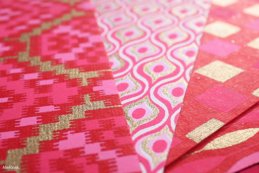 Ces feuilles L’or de Bombay de Toga (dont je vous avais partagé des idées cadeaux pour Noël), ont été fabriquées à la main en Inde sur du papier 100% recyclé. La gamme est disponible en 10 coloris. J’ai reçu lors de l’atelier le fuschia et rouge or & vert et or. J’ai été ravie car je réalise chaque année de nombreuses cartes pour toutes les occasions. Par ailleurs étant fan du scrapbooking, les papiers de qualité sont toujours les bienvenues !