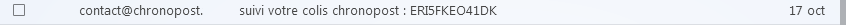 En objet, le suivi de votre colis chronopost et dans l’E-mail un lien pour vous amener vers le site de la poste… Je clique (honte à moi). Et là, alerte rouge de mon ordi qui se met à hurler : VIRUSSSSSSS