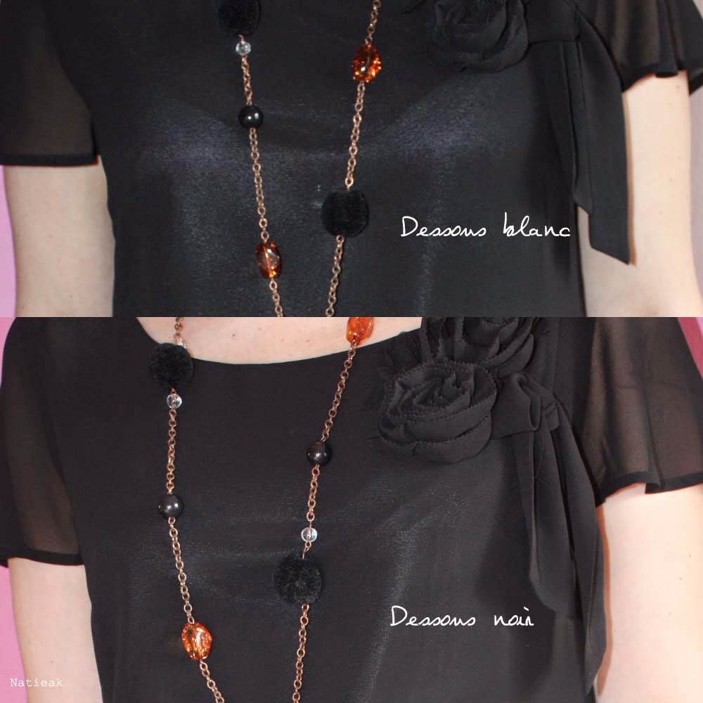 Attention si vous êtes pris en photo avec cette robe, pensez à mettre un soutien-gorge noir sinon le flash fera ressortir votre dessous clair.