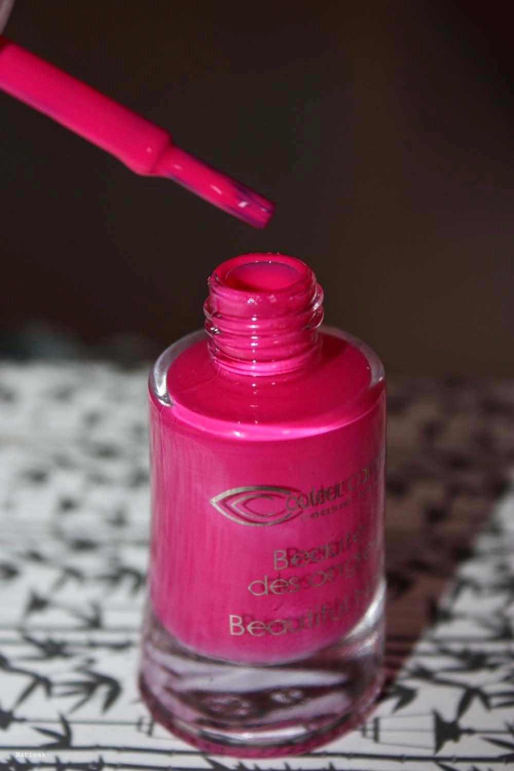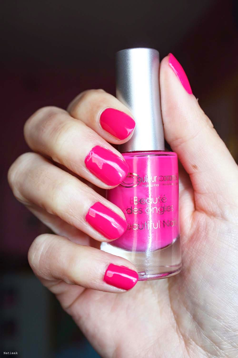 J’ai sorti de ma boîte un joli vernis à ongles rose fuchsia de Couleur Caramel. Ce vernis numéro 64 porte le doux nom de Rose bonheur. Il fait parti de la collection printemps été 2014 Y’a de la joie. Comme d’habitude chez Couleur caramel, ce vernis à ongles est sans parabène, sans toluène, sans formol et sans colophane. On trouve énormément de choix de teinte comme la Folie nacrée.