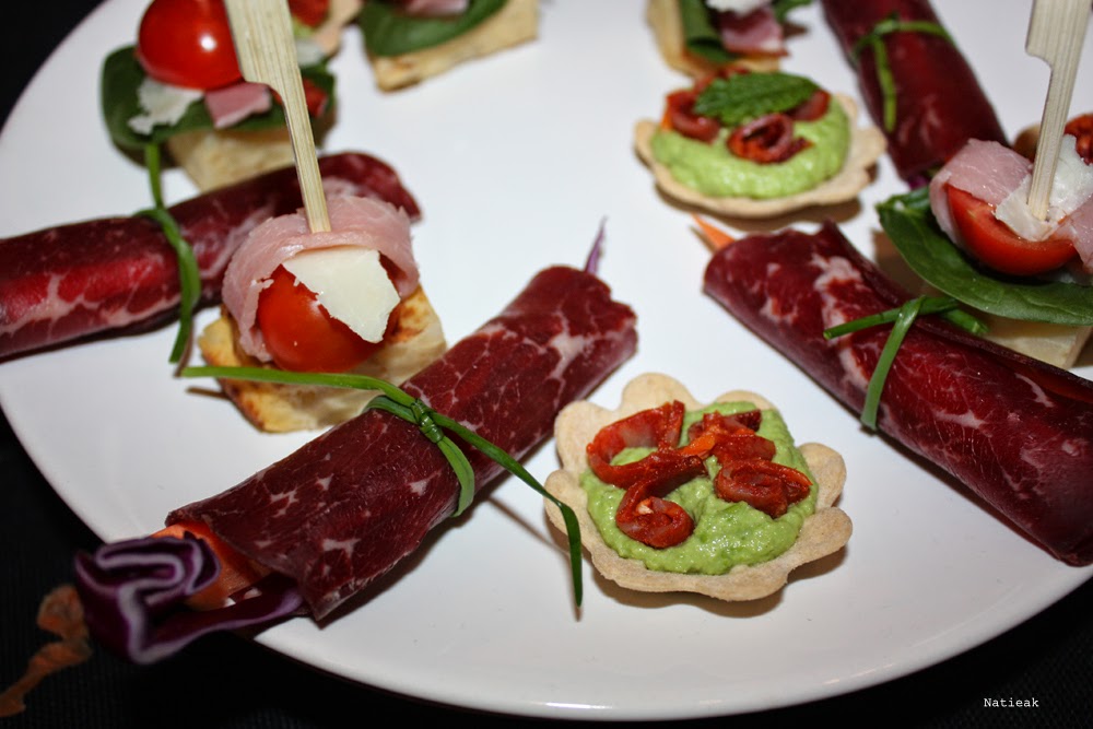 - Mini bouchées de tortilla,tomate séchée et ruban de filet de bacon Aoste.