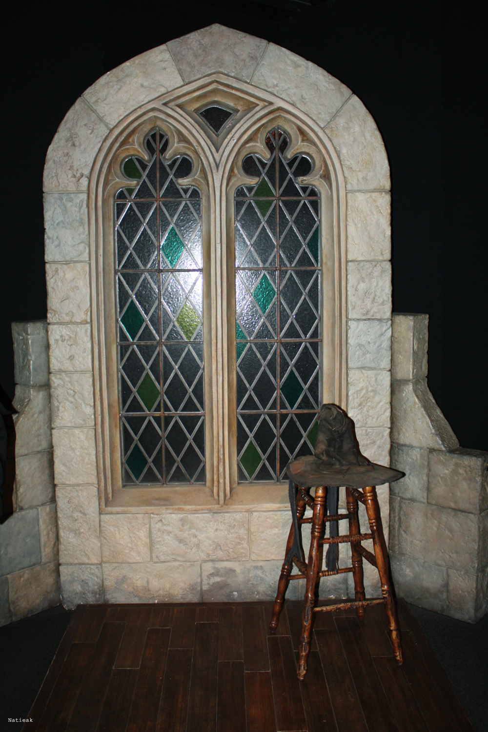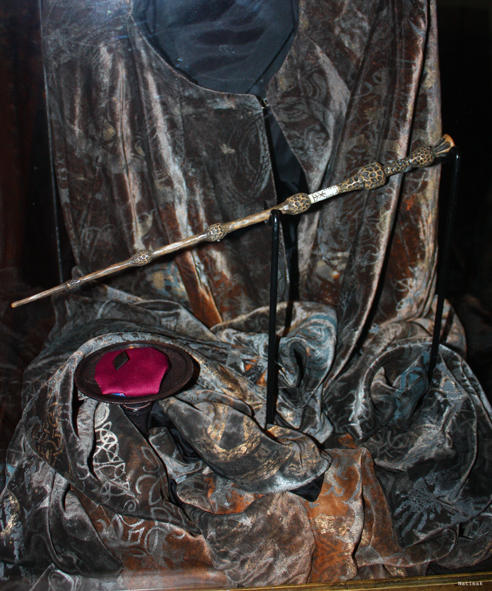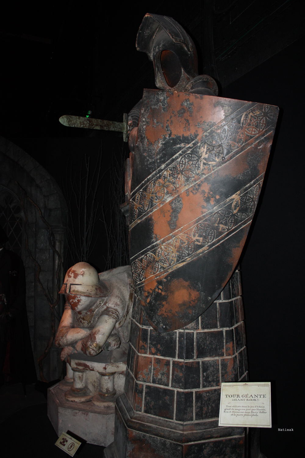 On découvre alors l’exposition avec ses nombreux costumes (une bonne majorité de l’exposition),  des objets des différents personnages et aussi des décors comme les pièces de l’échiquier, la forêt interdite, la cabane d’Hadgid et son grand fauteuil sur lequel on peut s’asseoir…