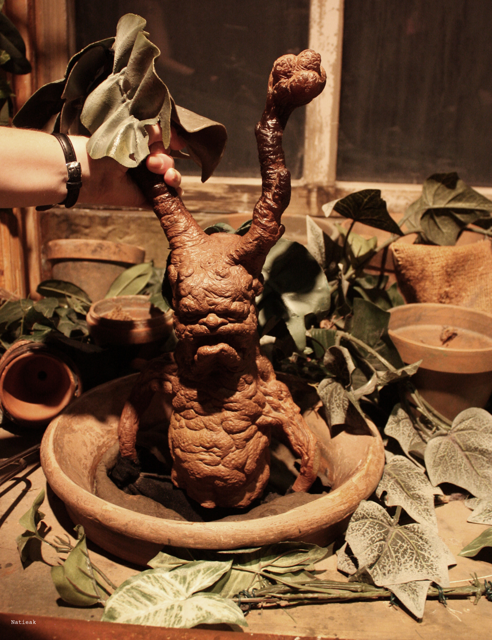 Enfin un moment interactif lors de l’exposition : on peut  soulever les mandragores de leurs pots qui poussent alors un sacré cri!