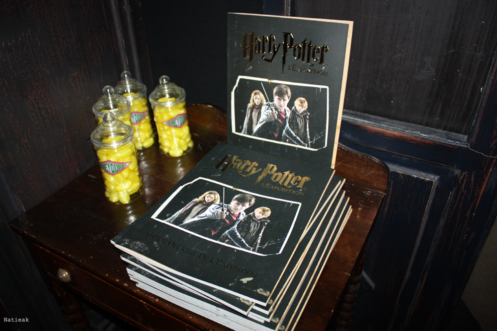La fameuse photo sur font verte pris avant l’exposition vous coûtera 18 €. La carte du maraudeur est à 42 €, les baguettes (moulage plastique) à 43 €, le programme de l’expo à 20 €, un mug avec l’inscription Harry potter à 15 €… D’ailleurs, avez-vous déjà testé les bonbons Berties crochu ?
