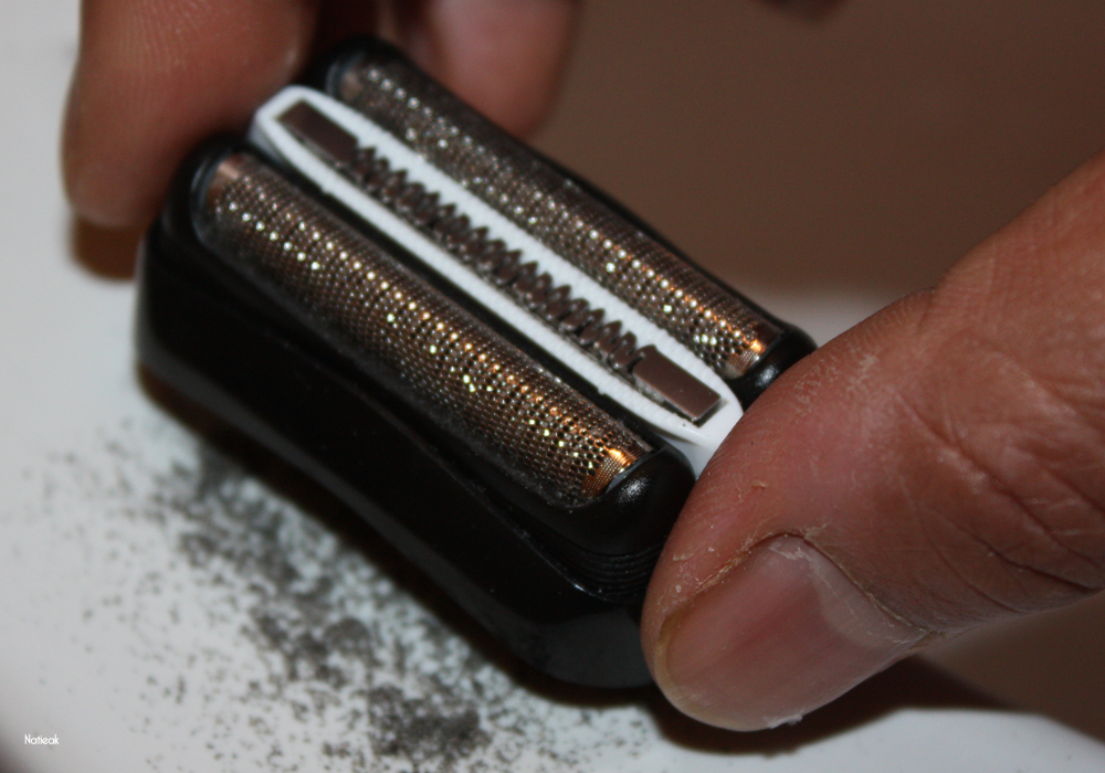 Attention : pour cette opération, Braun dit de mettre l’appareil en mode « précision », mais seul le modèle 3080s possède cette fonction. Rien n’est clairement expliqué pour les autres modèles. J’ai regardé la vidéo Braun sur leur site, mais là encore l’exemple est donné pour le modèle le plus perfectionné. Dans le doute, lorsque j’ai passé la grille du rasage sous l’eau, j’ai préféré la retirer de l’appareil pour la passer sous l’eau chaude (côté grille) puisque le modèle 3040s ne possède pas la fonction de « précision ».