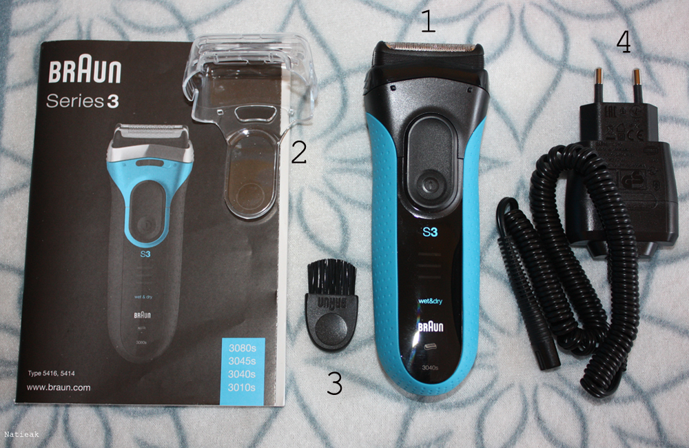 En fonction des coffrets, le rasoir a plus au moins d’option. Mon fils a reçu le le coffret 3040s livré avec différents accessoires :