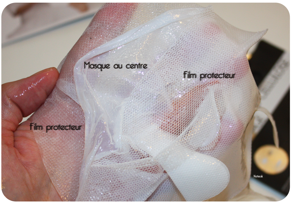 Une fois le sachet ouvert, on découvre le masque entouré de films protecteurs de chaque côté.