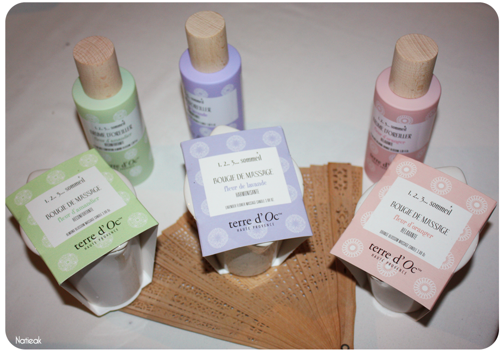 J’ai aussi découvert les bougies de massage 100 % naturelle à la cire d’abeille et au beurre de karité et dans la même collection les brumes d’oreillers. Présentées sous forme de spray, on a le choix entre la fleur d’amandier, la fleur d’oranger et la fleur de lavande.