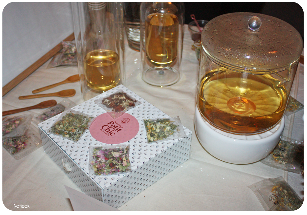 Les senteurs sont étonnantes et gourmandes. Mon coup de cœur olfactif va pour Pêcher mignon à l’odeur chocolaté. J’ai testé lors de la soirée la nouveauté L’Ensoleillée que je vous recommande pour cet été. J’ai été étonnée car j’ai apprécié cette infusion! Je pensais que cela aurait plus le goût d’eau chaude vaguement parfumé mais pas du tout, les parfums de cette infusion Ensoleillée sont très agréables. C’est une vraie surprise !