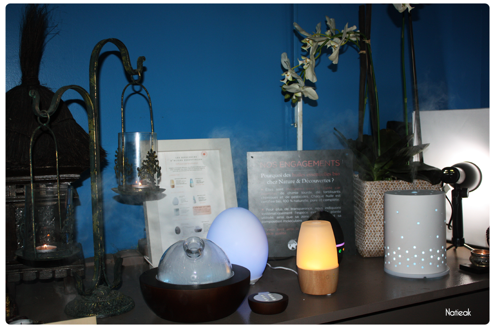 Ensuite, j’ai été regarder les diffuseurs : j’ai été émerveillée car c’est visuellement très joli (ma photo avec le flash ne leurs rendent pas hommage…).