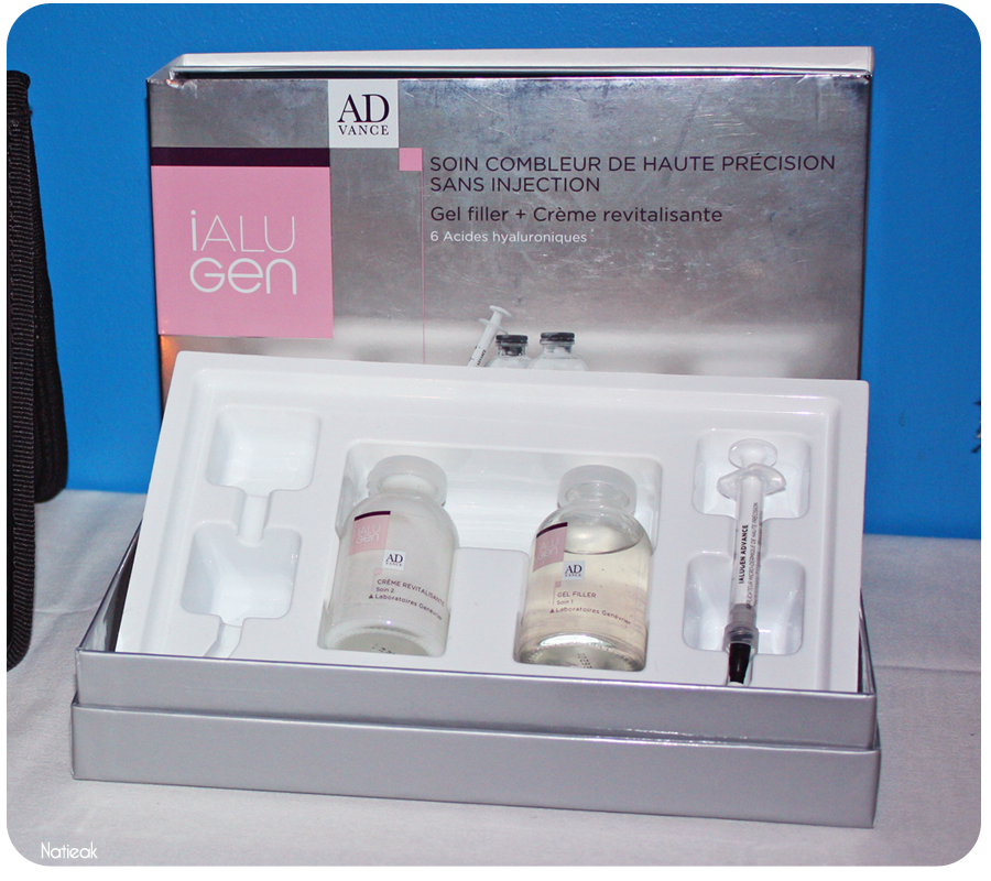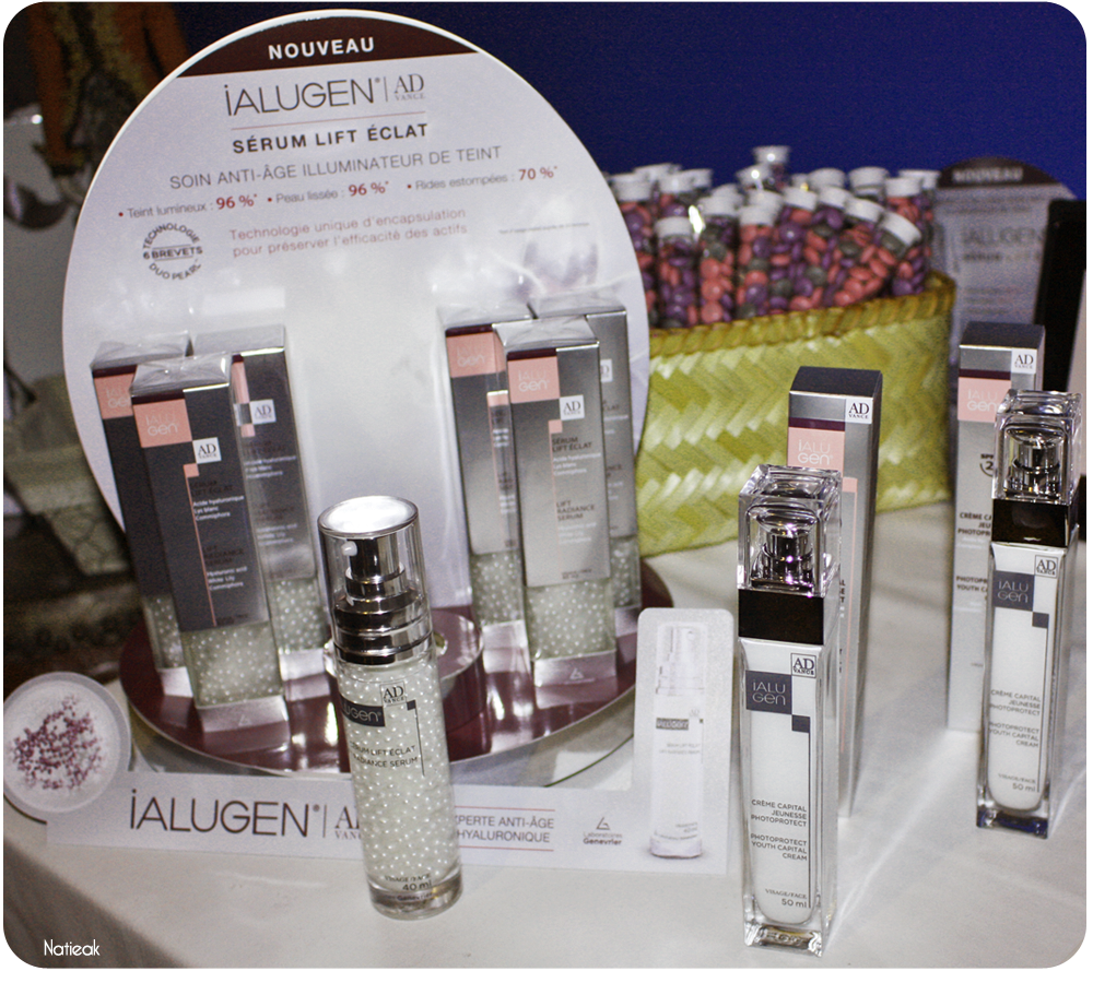 Après ces belles découvertes, je me suis rendue sur le stand de Ialugen. J’en avais entendu parler parce qu’elle a été primée aux Victoires de la beauté pour sa brume régénérescence. A part cela, je ne connaissais rien de cette marque vendue en pharmacie. Issu des laboratoires Genevrier, Ialugen propose des soins anti-âge contenant de l’acide hyaluroniques et des actifs.
