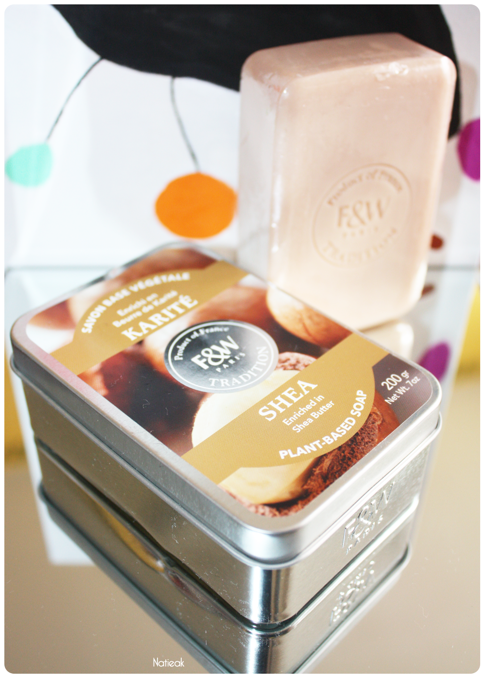 La marque française F&W Paris nous a également offert le savon Karité. Il fait parti de la collection de savon qui se compose du parfum lait, Rose, Miel et Lavande.