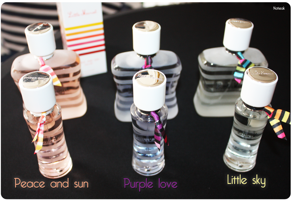 J’ai découvert les trois fragrances sorties en été 2015 : Peace and sun (aux notes florales), Little sky et Purple love, mon très grand coup de cœur à la senteur ultra gourmande. C’est frais et sucré à la fois, tout ce que j’aime.