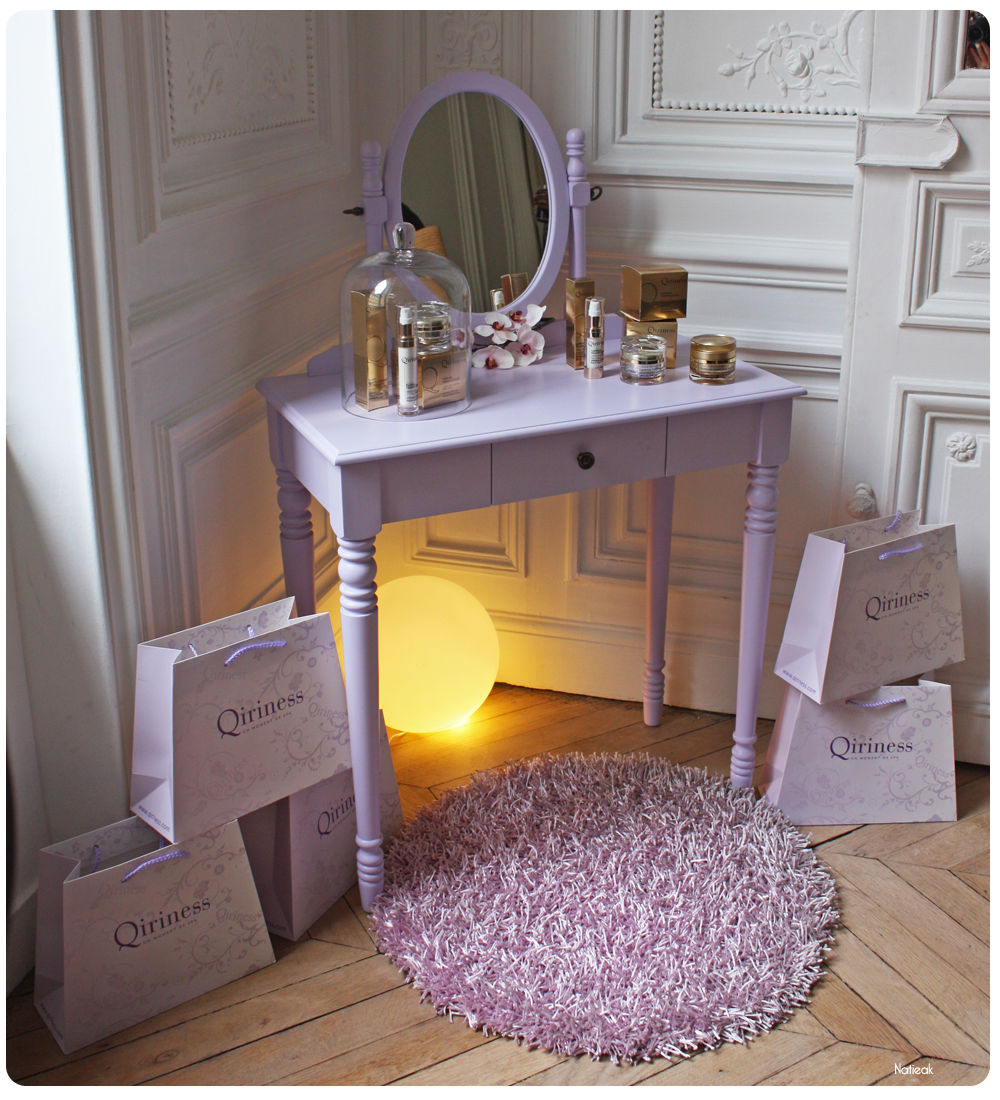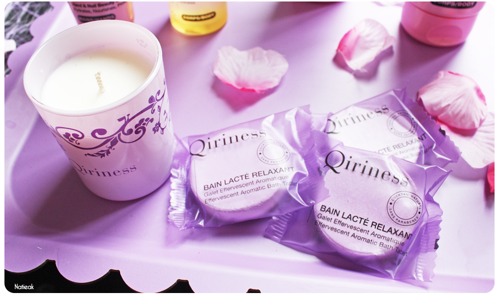 Un peu d’histoire : Le SPA procure un bon moment de bien-être, mais nous n’avons pas forcément ni le temps, ni l’envie (ni les sous) pour nous y rendre. Pour permettre aux femmes de bénéficier d’un moment de détendre, Qiriness (marque française dont les produits sont fabriqués en Suisse) a créé depuis 10 ans une gamme – majoritairement pour le visage – afin de reproduire à la maison les soins du SPA.