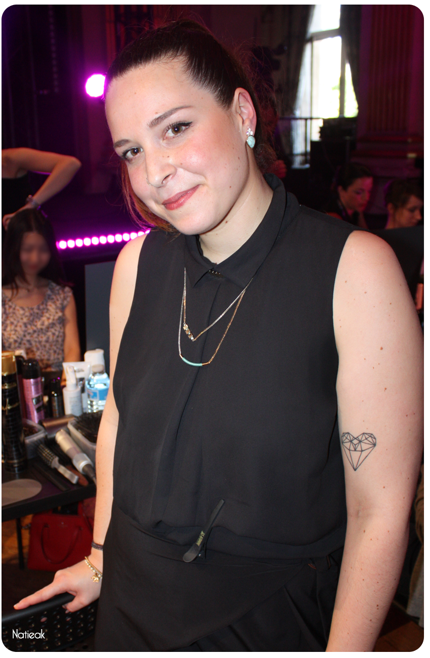 Ma coiffeuse d’un soir fut Bénédicte du salon Alexandre de Paris. Elle y a reçu sa formation il y a 7 ans et depuis, elle y exerce sa profession. Lors de la soirée, elle m’a fait une tresse africaine revisitée. En 20 minutes, la coiffure était réalisée. Autant vous dire qu’elle a un sacré tour de main ! Elle a le geste sûr et a le mérite d’être bien sympathique.