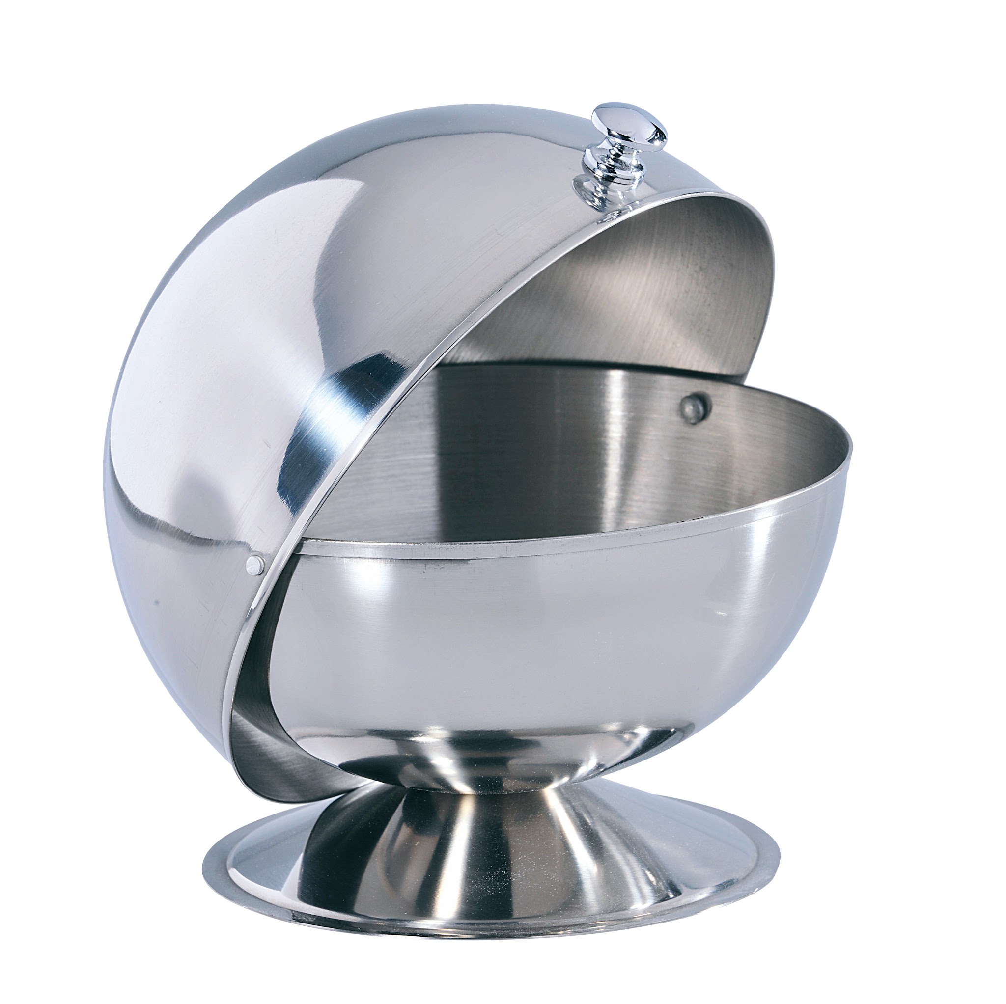 | Collection Bistro: Plateau rond inox (12,25 €) et assiette « Steak » en faïence (3,60 €) | Collection Bistro: Sucrier boule (6,50 €) |
