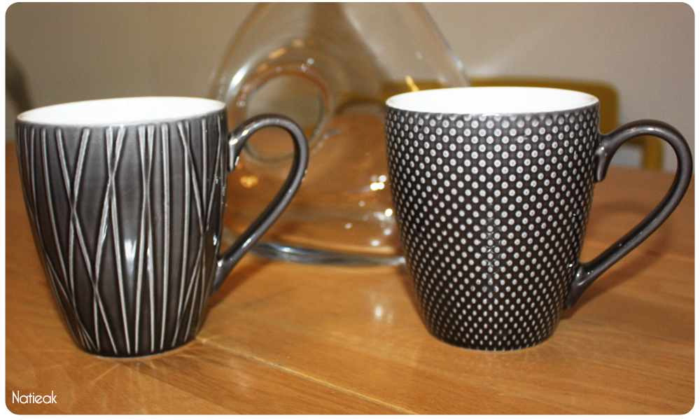 Pour se réchauffer lorsque les températures seront plus frisquettes, E.Leclerc maison propose de jolis mugs en grès dont la surface présente un léger relief. J’ai découvert ces deux modèles mais il en existe trois en tout. J’y mettrai bien mon p’tit chocolat chaud!
