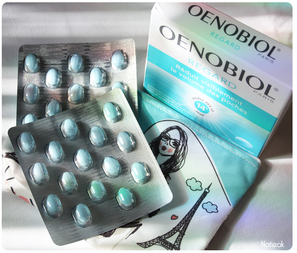 Spécialisé en compléments alimentaires depuis 30 ans, la marque promet grâce à Oenobiol Regard de « réduire visiblement le volume des poches  dès le 14 ème jour « . Pour Oenobiol,  » la fatigue et le stress […] se lit sur le contour des yeux. Les poches apparaissent […] qui donnent des traits tirées« .