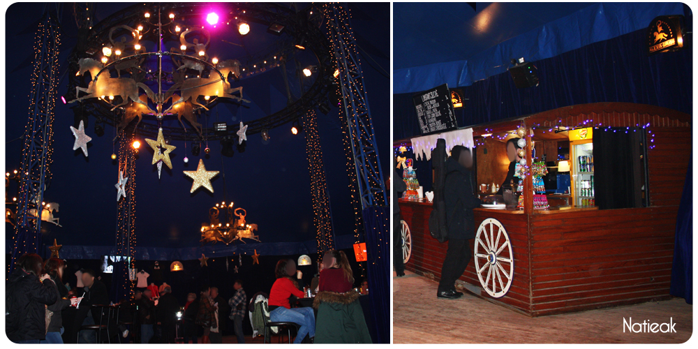 Avant même d’accéder au chapiteau, la magie opère déjà dans la salle de restauration. La décoration féerique donne envie de se poser un moment, afin de s’imprégner de cette douce ambiance. De petites baraques, façon roulette, proposent des gourmandises salées ou sucrées. Et si vous êtes fan de barbapapa, vous pourrez aussi vous faire plaisir.