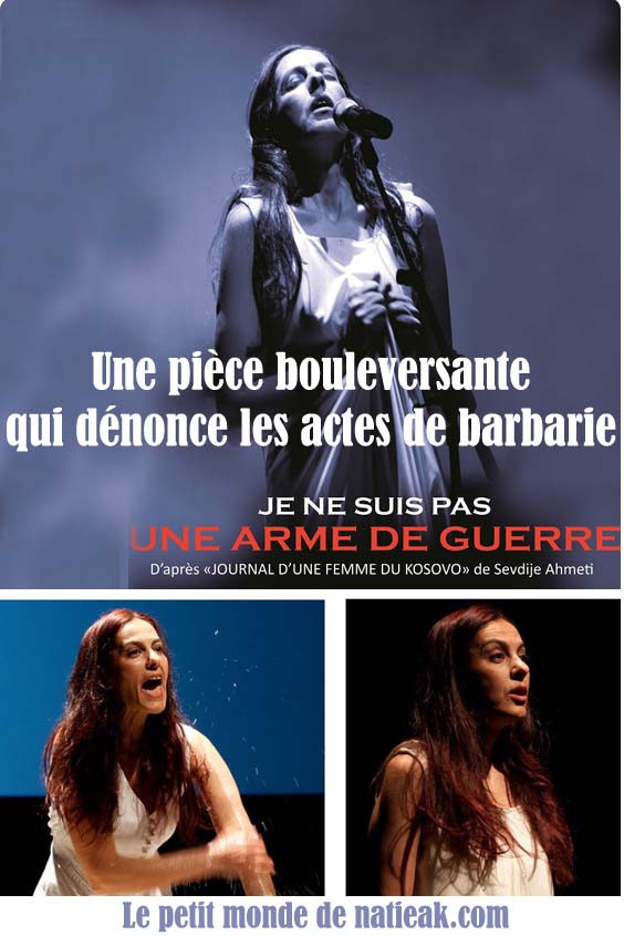 La pièce Je ne suis pas une arme de guerre s’appuie justement sur ce livre. Née d’un projet collectif, elle vise à dénoncer tous les actes de barbarie perpétués contre l’Homme et notamment les enfants et les femmes durant la guerre du Kosovo. L’objectif étant que le corps des femmes ne soit plus considéré comme un champ de bataille lors des guerres.