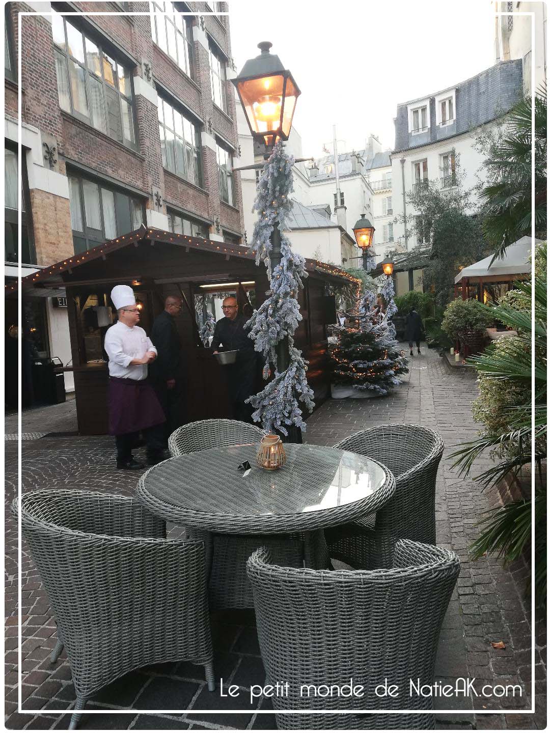 Par l’occasion, la cour de l’Hôtel parisien a revêtu une décoration hivernale aux notes assurément festives, et cela d’autant plus que des chants traditionnels de Noël raisonnent avec douceur dans cet espace chaleureux.