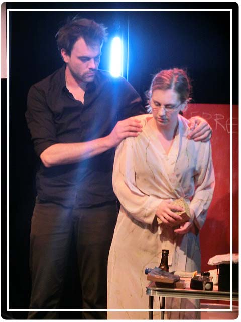 En conclusion : Dans la jungle des villes est une pièce différente, décalée, mais très intéressante du fait des sujets abordés (soif de puissance, conflit générationnel, différence ethnique, homosexualité…). Cela permet de faire une première approche de l’univers de Bertolt Brecht, et d’autant plus que cette adaptation audacieuse est intelligemment mise en scène. J’ai grandement apprécié le fait que le metteur en scène prenne le temps à la fin du spectacle d’échanger avec son public. Ces précieux moments ont permis de débattre de la pièce et de trouver une réponse à nos éventuelles interrogations et ainsi de mieux cerner l’univers obscure et complexe de l’auteur. Bravo à cette jeune compagnie qui nous offre une très belle revisite de Brecht !