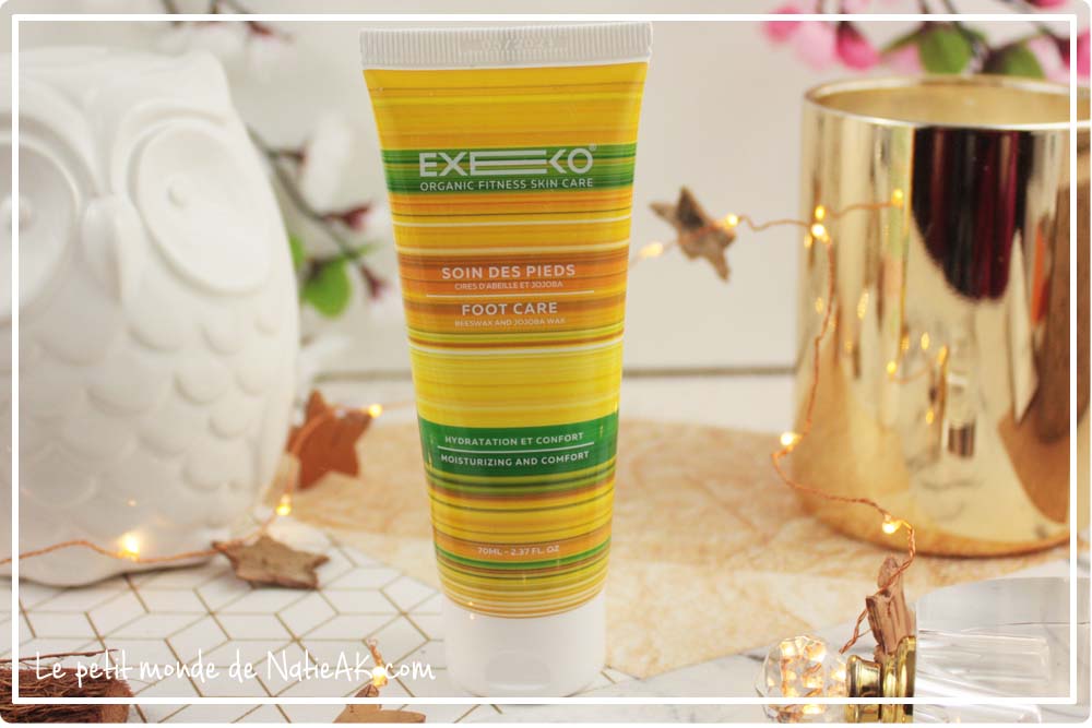 Ce soin réconfortant Exeko est destiné à soulager les pieds soumis à rude épreuve (running, talon, marche, chaussures serrées…). Afin de les apaiser, la marque a notamment intégré dans sa formule de l’huile de tournesol (régénératrice et adoucissante), de l’eau florale de lavande bio (apaisante) et de la glycérine (hydratante). La marque met en avant également de la cire d’abeille bio (hydratante et protectrice) et de la cire de Jojoba (réparatrice et apaisante) et tous deux anti-oxydants.
