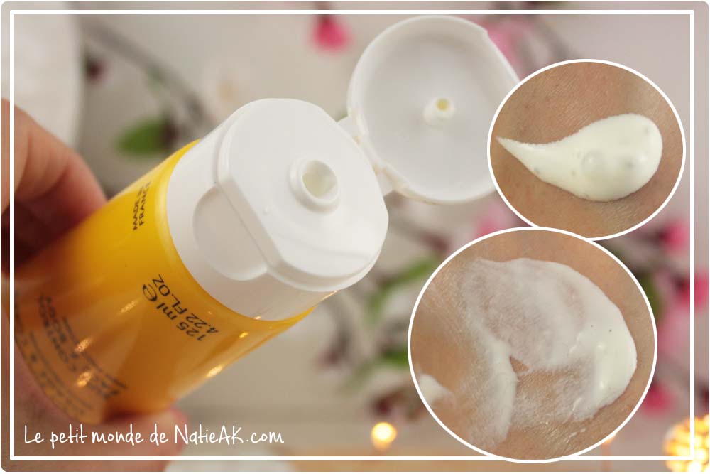 Cette protection solaire se présente dans un tube souple avec un capuchon à clapet dont le packaging est identique à l’anti-âge solaire visage. La différence réside dans le fait qu’on pourra appliquer ce lait solaire aussi bien sur le visage que le corps, ce qui apporte une praticité plus intéressante d’autant qu’il peut être utilisé chez l’enfant dès 3 ans. La texture fluide est similaire à l’anti-âge : fondante et non collante, avec là encore une senteur plaisante mais toujours en délicatesse. Cela en fait un soin protecteur qu’on a plaisir à appliquer.