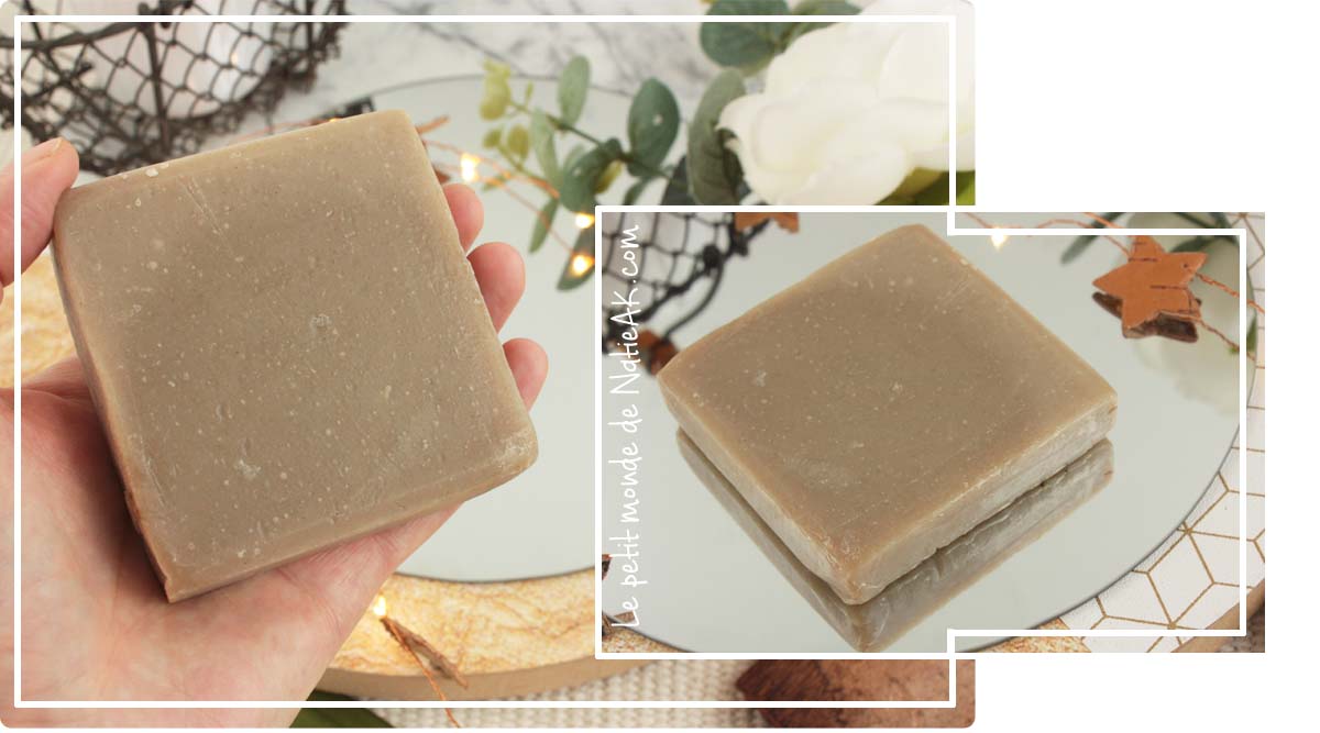 Ce savon surgras purifiant destiné au corps et au visage de toutes les peaux permet de nettoyer en douceur la peau, tout en lui apportant une hydratation. En effet, un savon surgras a la particularité de lutter contre le dessèchement cutané. Fabriqué à la main, la marque a intégré du beurre de karité (hydratants, nourrissants et apaisants, il restaure la film hydrolipidique), du beurre de cacao (hydratant et protecteur), de l‘huile de noix de coco (apaisante, relaxante et cicatrisante), de l’huile d’olive (antioxydant, protège, tonifie et assouplit la peau), huile de ricin (adoucissante, apaisante et réparatrice), huile d’amande douce (toutes les vertus de l’amande sur ce précédent dédié), et du rhassoul (argile minérale, action nettoyante, purifiante et tonifiante).