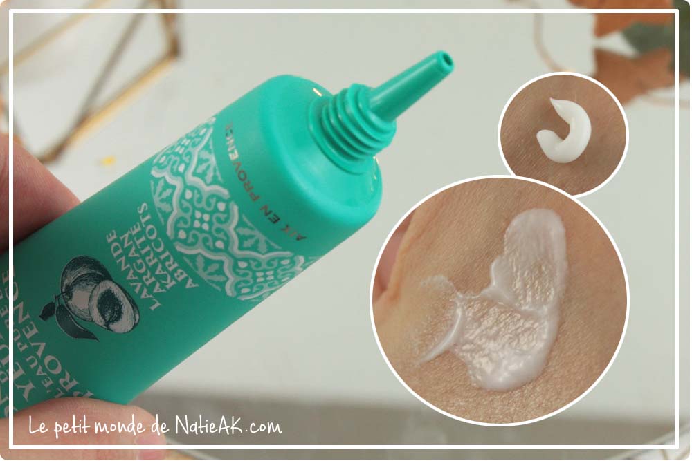 Ce soin contour des yeux à l’eau pure de Provence de Sainte Victoire est destiné à nourrir et protéger cette zone si fragile du visage en offrant des actifs anti-âge. Afin d’apporter de la douceur tout en ayant des actions bénéfiques, la marque a intégré de l’eau florale de lavande bio (tonifiante et rafraîchissante), huile de graines de tournesol (régénératrice), du beurre de karité (hydratants, nourrissants et apaisants), de huile d’argan bio (hydratants, protecteurs, anti-vieillissement et cicatrisant) et de l’huile de noyau d’abricot bio (effet bonne mine et protectrice). Ce soin contient également du biosaccharide riche en fucose au bienfaits anti-âge et apaisant.