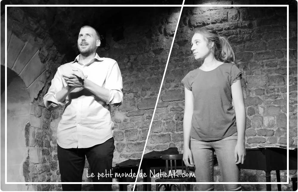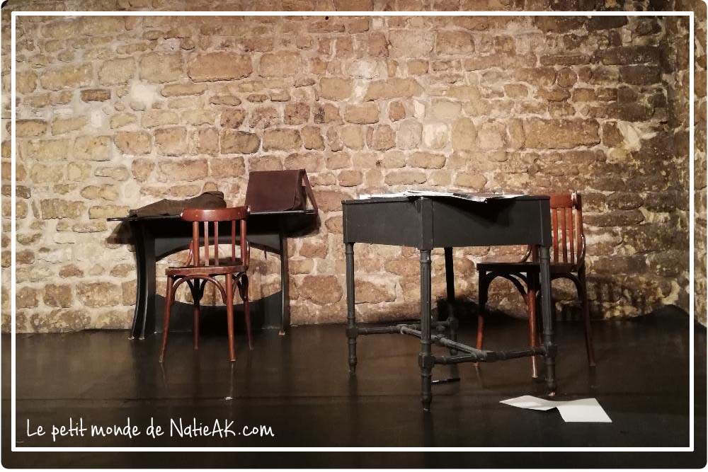 Si j’avais hâte de découvrir ce livre en version théâtrale, j’ai avant tout fait le choix de cette pièce pour sa metteuse en scène Violette Erhart. En effet, j’ai eu l’occasion de la découvrir comme comédienne dans Bérénice 34-44 : une pièce qui abordait un fait historique tabou. Impressionnée par sa performance, j’étais très curieuse de la découvrir dans la mise en scène. C’est donc avec un grand enthousiasme que je me suis dirigée dans la cave voûtée au mur de pierre, afin de me placer au premier rang, l’emplacement étant libre.