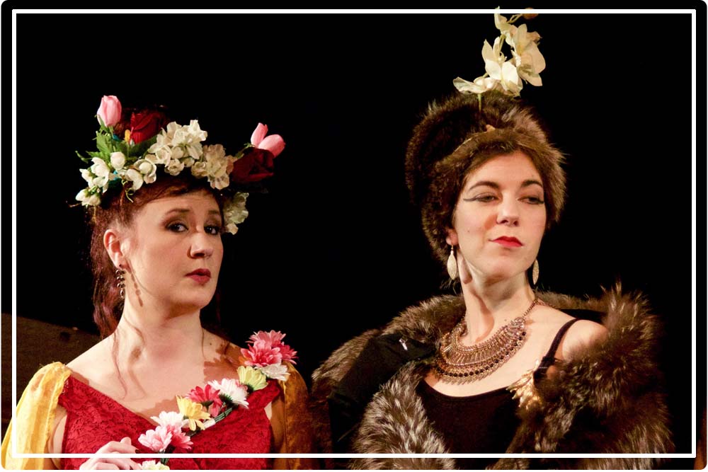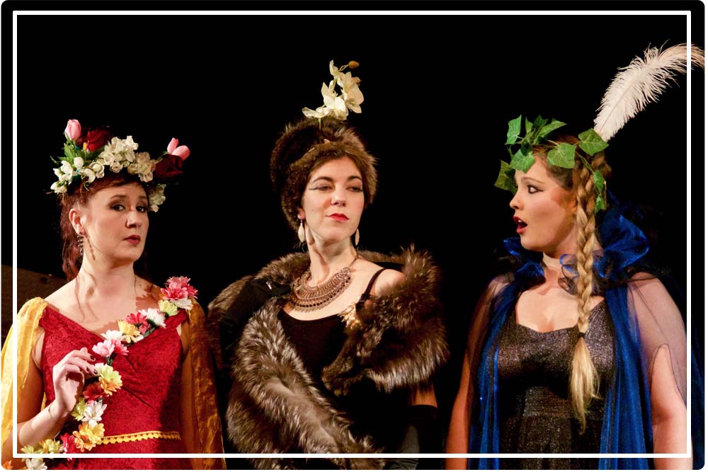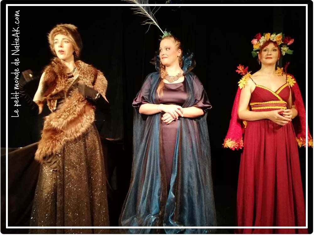 Direction le premier rang pour être au plus près de ces divas ! Sur scène, un piano et un guéridon où un bouquet de fleurs a été déposé. Un déco succinct me direz-vous ? Que nenni, car la seule présence des trois divas – aux styles vestimentaires bien particuliers – va attirer tous les regards : mais pour une diva, seule sa présence suffit… Comment faire alors pour évincer ses concurrentes ? Leurs attitudes totalement déjantés entraînent immédiatement les premiers rires dans la salle…