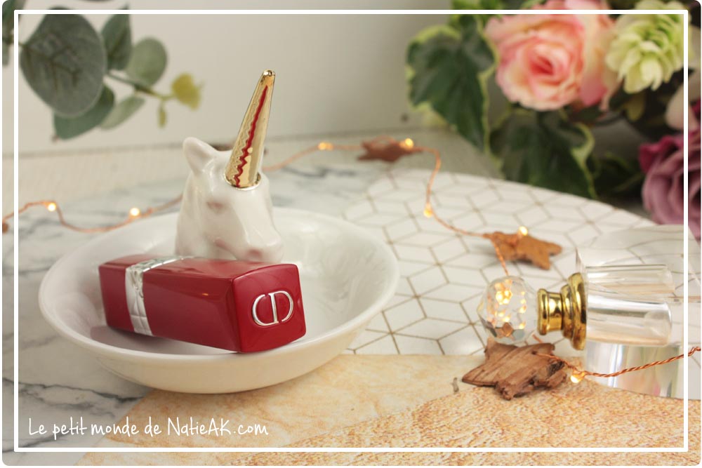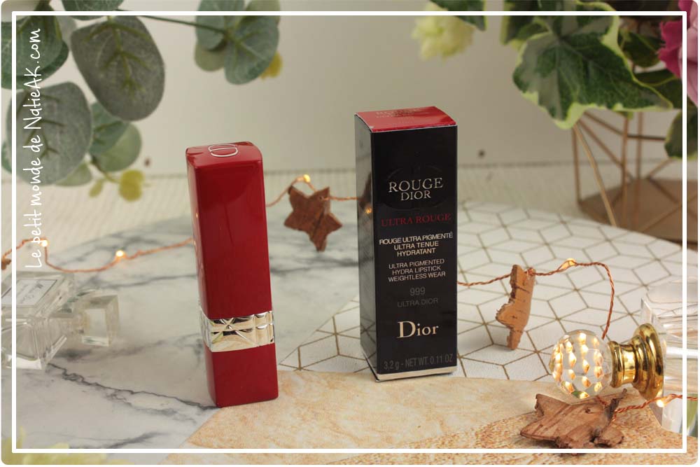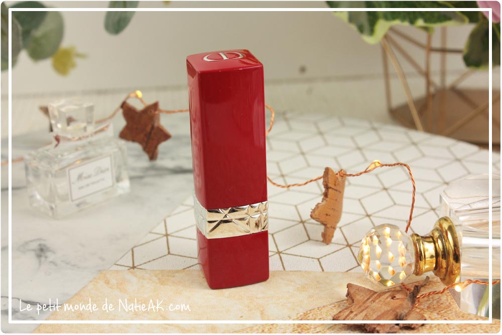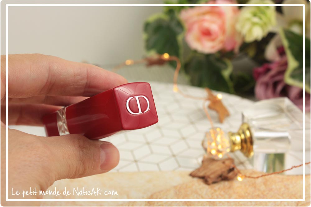 Disponible en 26 teintes, j’ai choisi l’Ultra rouge en 999 au prix très accessible de 28 €50 sur le site Tendance Parfums (contre 37 € sur le site de Dior). Pour en faire la promotion, son égérie – Natalie Portman – simplement vêtue d’un pull rouge – porte justement cette teinte rouge emblématique 999, une teinte créée par Christian Dior dans les années 50.