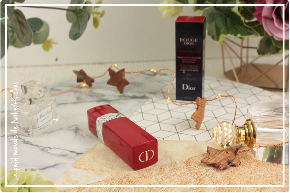 Mon addiction aux rouges à lèvres d’un rouge glamour m’a fait de nouveau succomber à la tentation lorsque j’ai reçu dans la box Prescription lab des échantillons Dior : le rouge à lèvres à l’huile florale Rouge Dior ultra care et ce rouge à lèvres ultra rouge 999, que j’ai eu l’opportunité de commander sur le site Tendance parfums, spécialisé dans la parfumerie, soins et maquillage de grande marque à petit prix.
